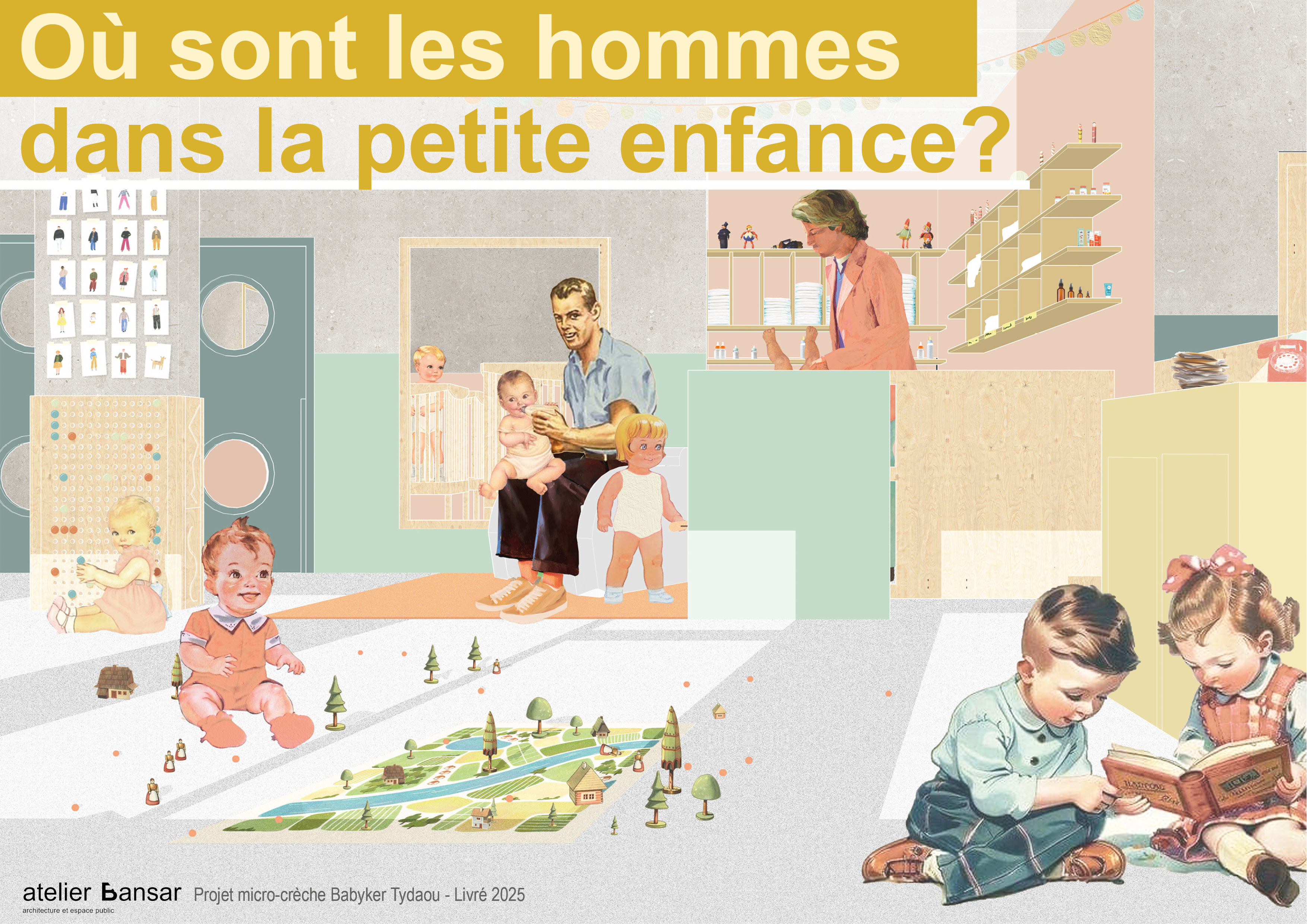En tant qu’architectes investis dans la petite enfance et l’éducation, nous avons fait un choix simple mais volontaire : intégrer systématiquement des figures masculines dans les visuels de nos projets de lieux d’accueil de jeunes enfants.